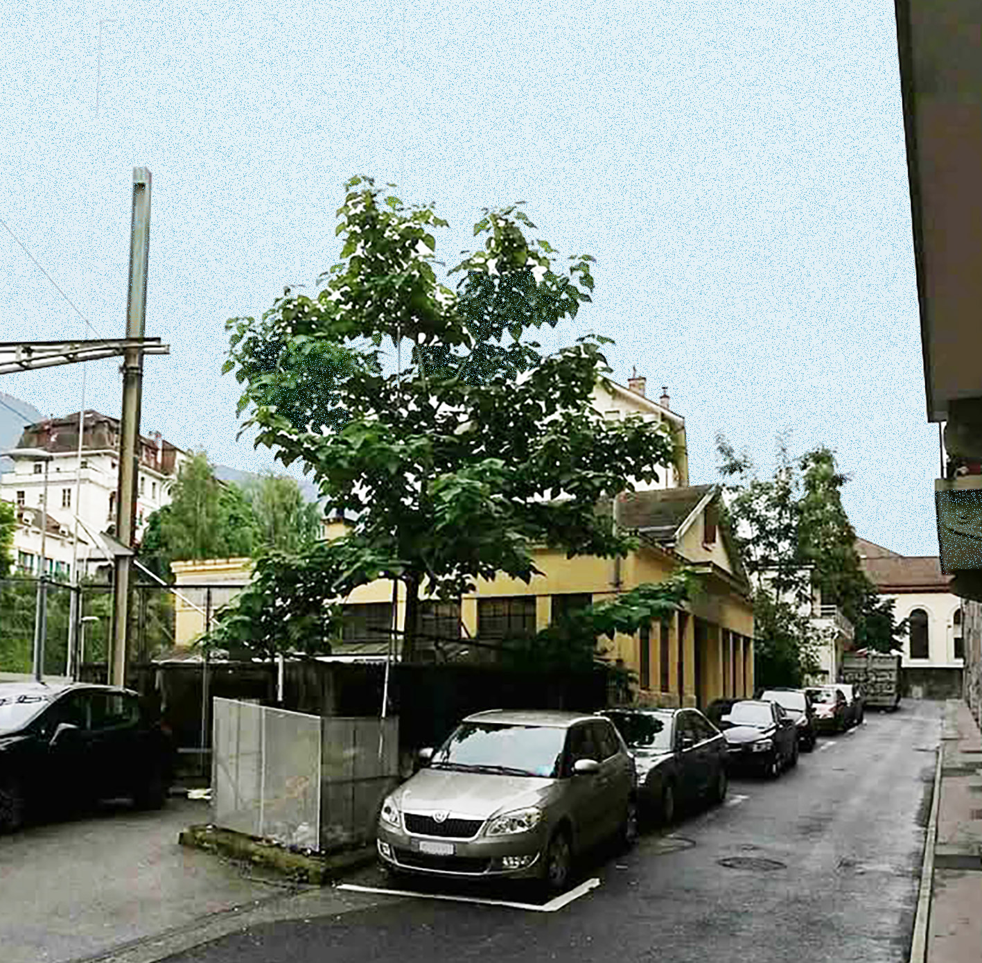 années ’50-La Rouvenettaz avec -la serrureie Genoud, uzne maison et aU fond la Pmewnsion EWiléhelm :coll.Benjamin Lamooureux) (PHO