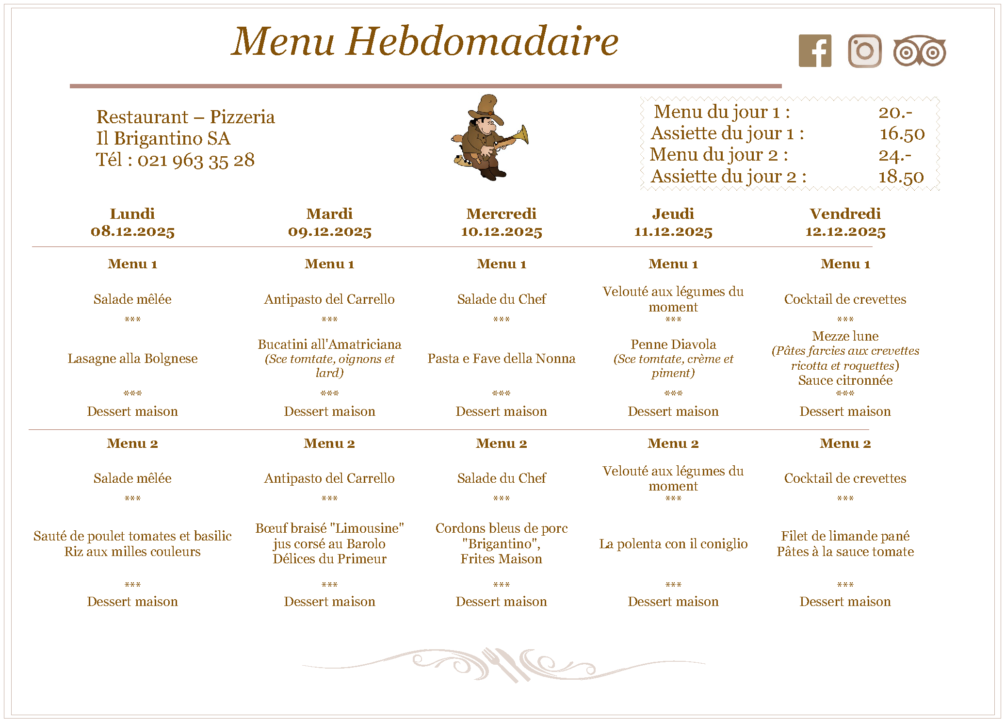 Il Brigantino – Les menus du jour du 8 au 12 décembre 2025