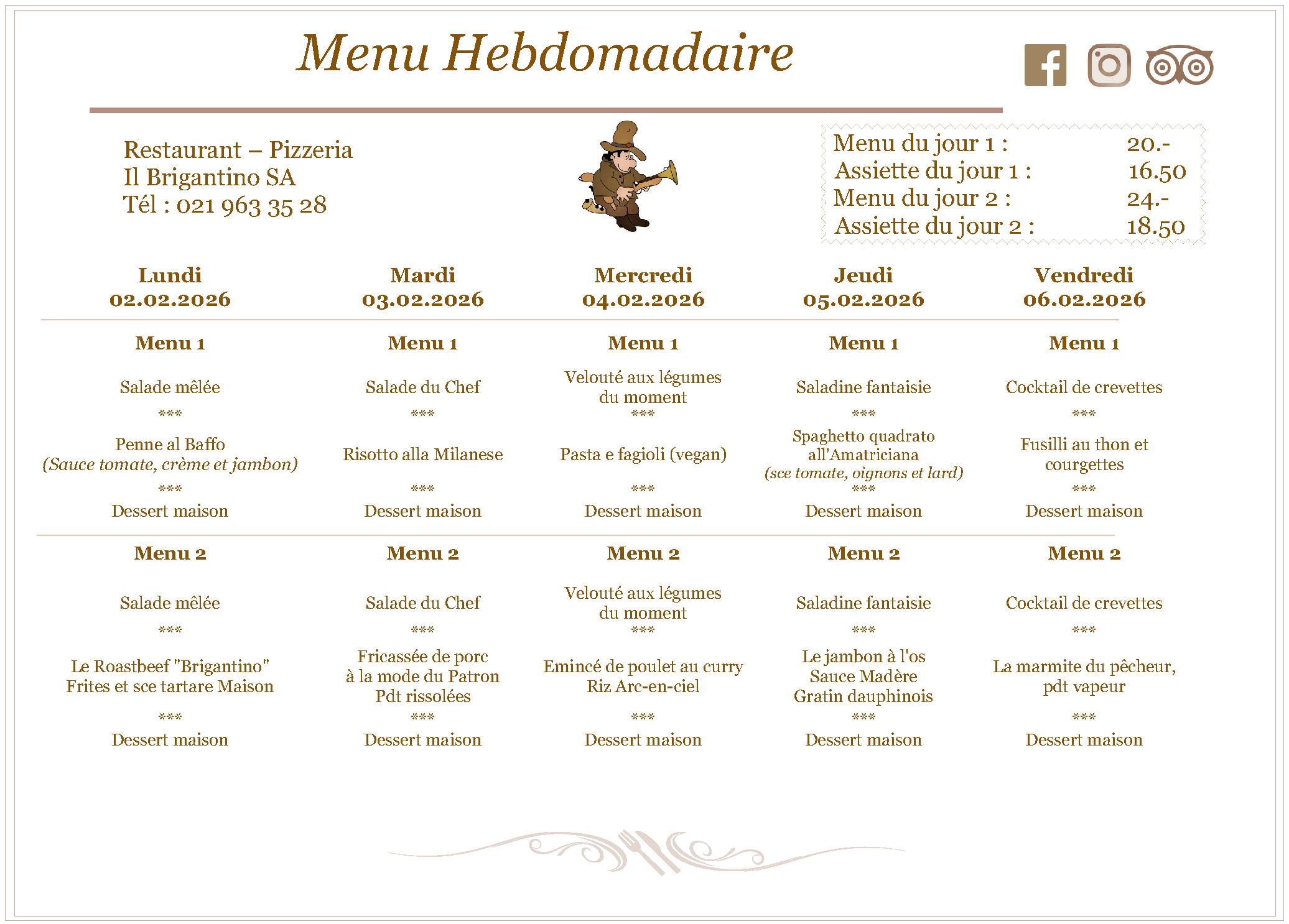Il Brigantino – Les menus du jour du 2 au 6 février 2026