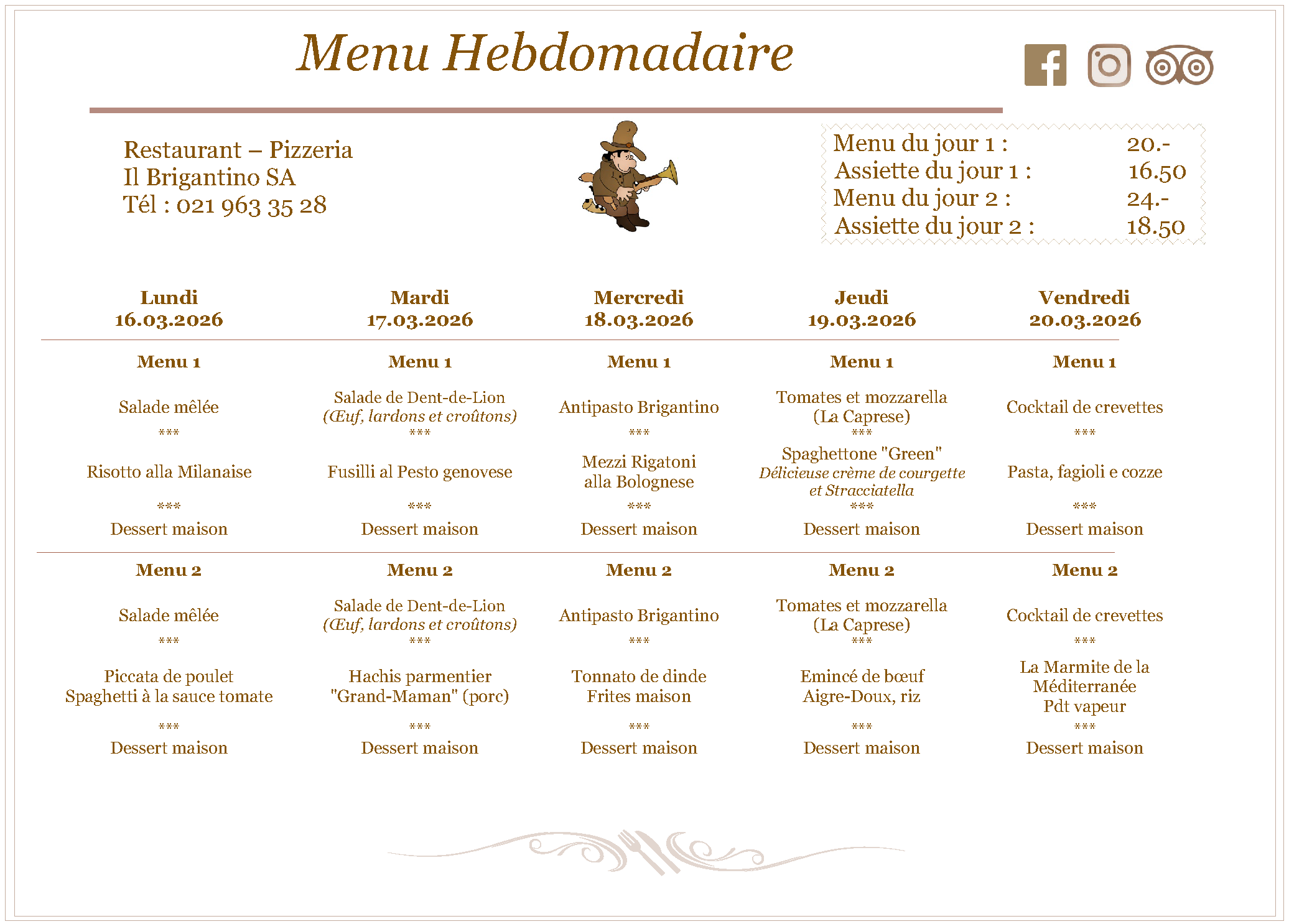 Il Brigantino – Les menus du jour du 16 au 20 mars 2026
