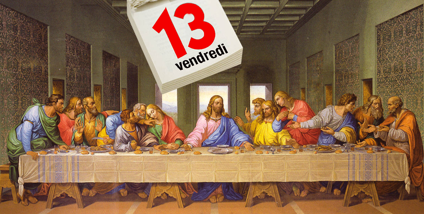 Pour les chrétiens du Moyen-Âge, le vendredi 13 était un jour néfaste, le Christ ayant été crucifié un vendredi, et ayant convié 13 personnes à la Cène, son dernier repas (ses 12 apôtres – et le traître Judas). Vendredi 13 était donc un jour sombre… (image: La Cène (1496) de Léonard de Vinci).