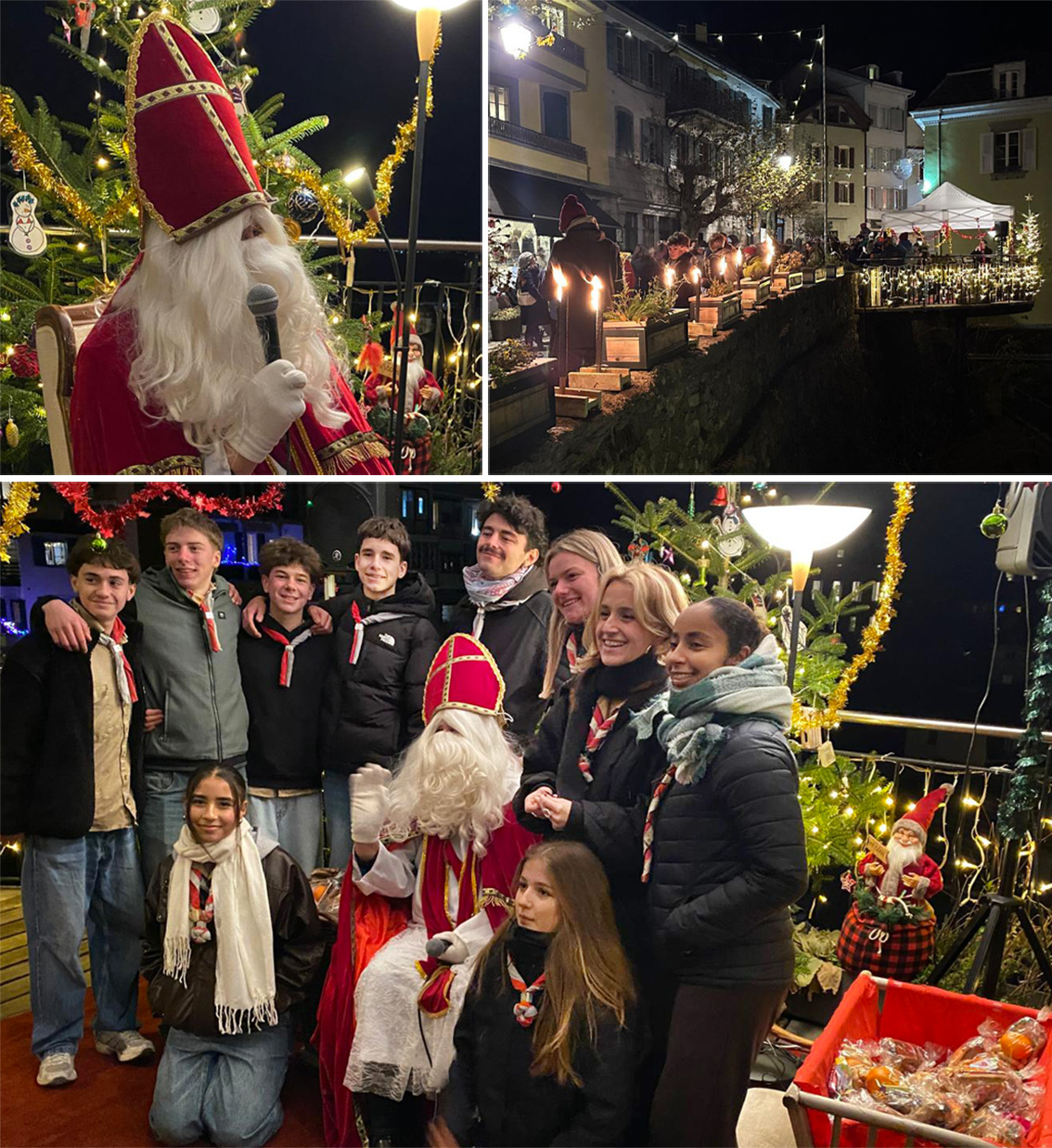 C’était samedi 6 décembre à la Place des Planches. Le légendaire Saint Nicolas attendait les petits et les grands enfants (‘sages’), aidé par les scouts de Montreux.  Belle tradition.