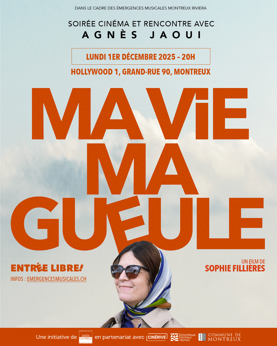 Ce soir, 20h au cinéma Hollywood à Montreux (Grand Rue 90), rencontrez l’artiste la plus récompensée aux Césars de toute l’histoire du cinéma français: Agnès Jaoui sera là pour vous présenter “Ma vie, ma gueule” puis discuter avec vous. L’entrée est gratuite ! La soirée se poursuivra à la bibliothèque de Montreux-Veytaux (même bâtiment) autour de son livre “la taille de nos seins” et du verre de l’amitié.  Du “Goût des autres” à “Cuisine et dépendance”, “Un air de famille”, “On connaît la chanson” en évoquant bien sûr Jean-Pierre Bacri et les personnalités avec qui elle a travaillé, c’est une opportunité de partager un moment unique avec cette artiste majeure du cinéma et du théâtre.