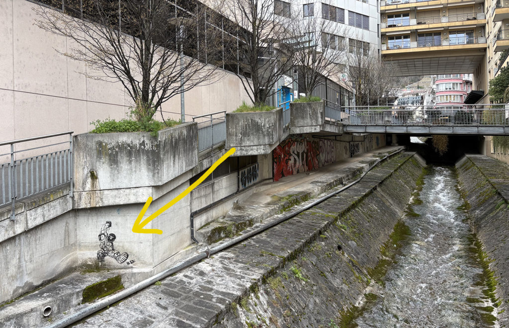 L’extrait d’image publié vendredi passé représentait ce graffiti sur la paroi longeant la Baye de Montreux, co?te? Centre Forum