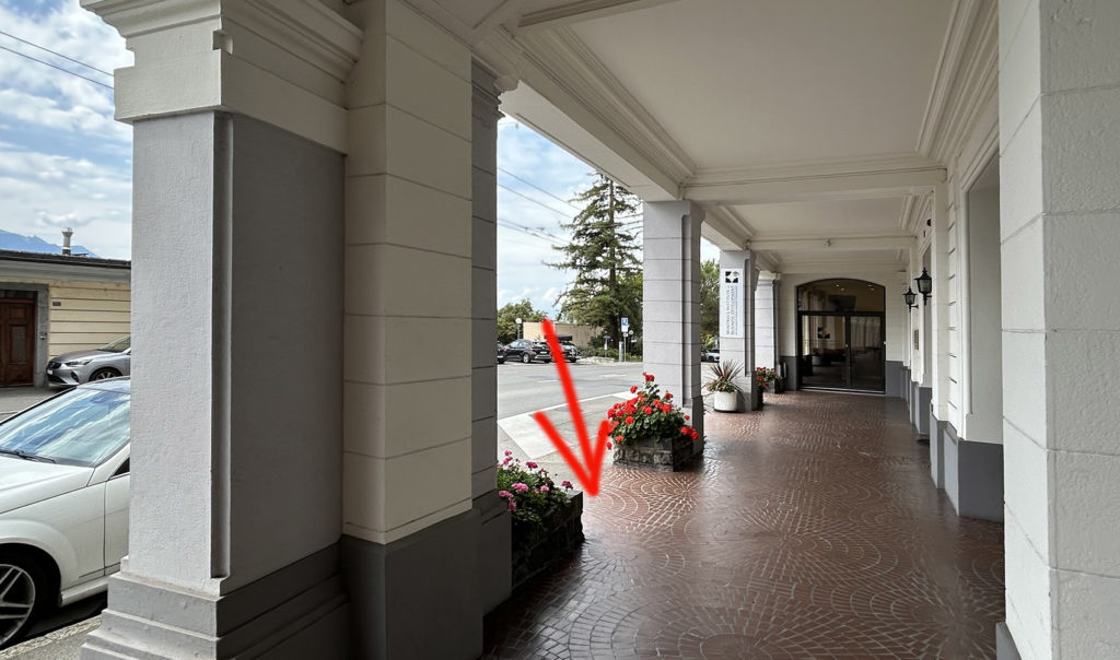 L’extrait d’image publié vendredi passé représentait ce pavement devant la Re?sidence des Alpes av. de Chillon 74 à Territet .